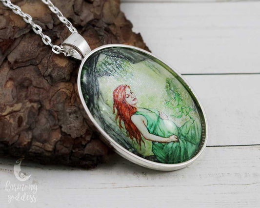 Faerie of The Green Pagan Fantasy Silver Necklace
