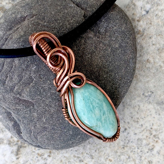 Amazonite and Copper Pendant Amulet