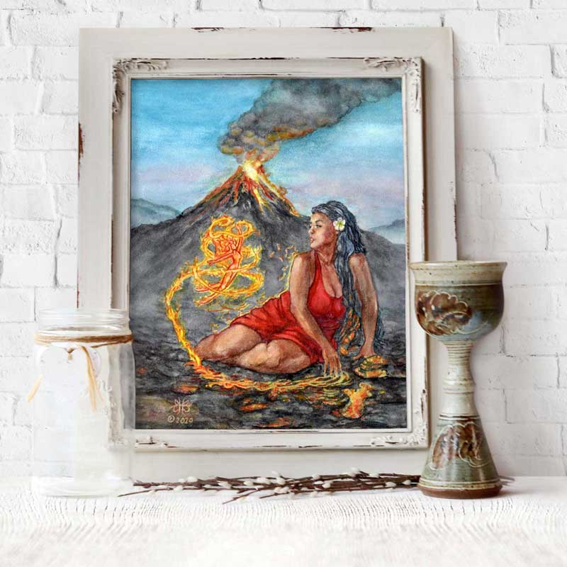 Are you forever stuck inside staring at a computer screen? Take a break from the mundane with a symbol of the element of fire from Harmony Goddess. This child of fire magic dances in flame of her own glory, a talisman of your personal will to achieve your desires.