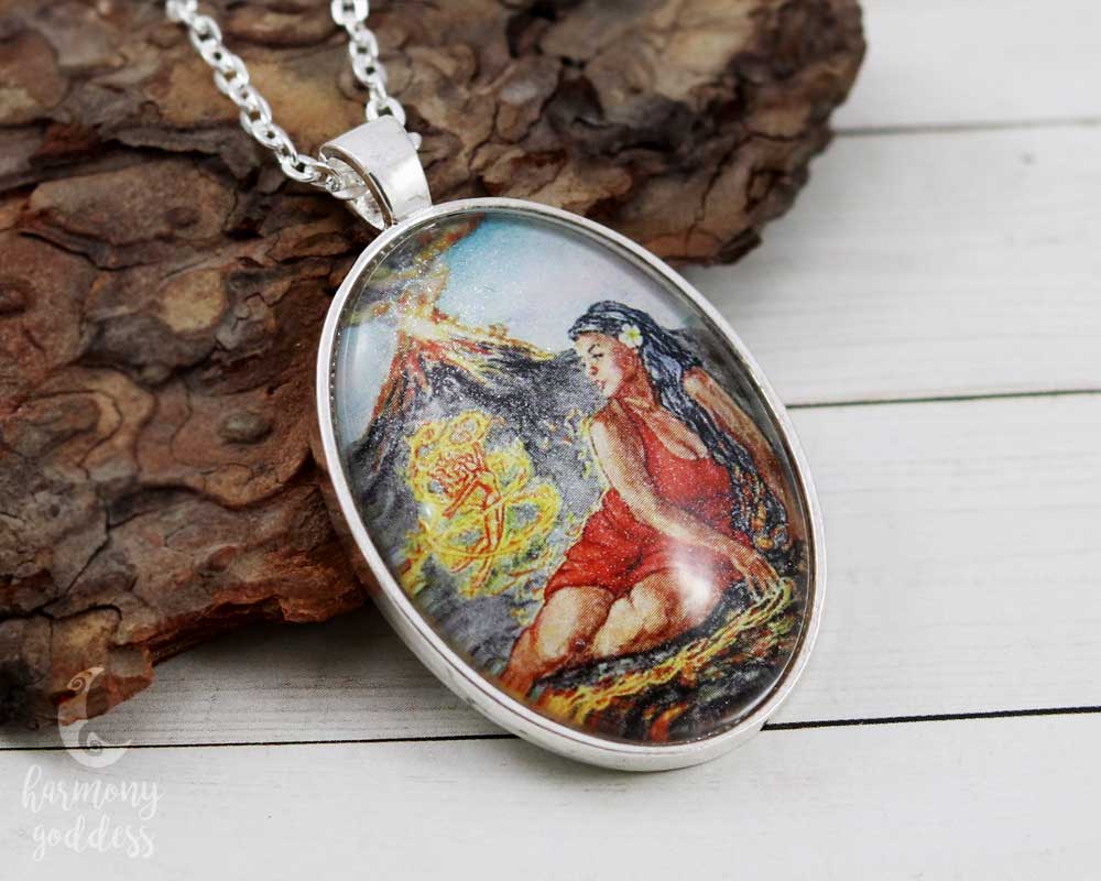 One final accessory adds that extra punch. Glittering under glass with details in red and yellow, the Fire Mother Goddess Necklace by Harmony Goddess is a symbol of your elemental power - and the perfect touch to celebrate your will and charisma.