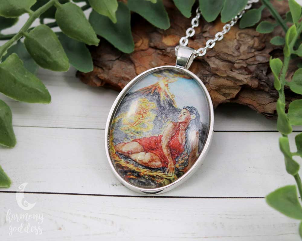 Shining with pearlescent glitter, it's a touch of magic to cast a spotlight on your day. This empowering pendant cameo has been lovingly crafted by Beth from a miniature art print of her original painting of the Fire Mother. Mounted in a silver plated bezel under a crystal clear glass cabochon, it has the perfect amount of flash and shine to enhance your dazzling nature.