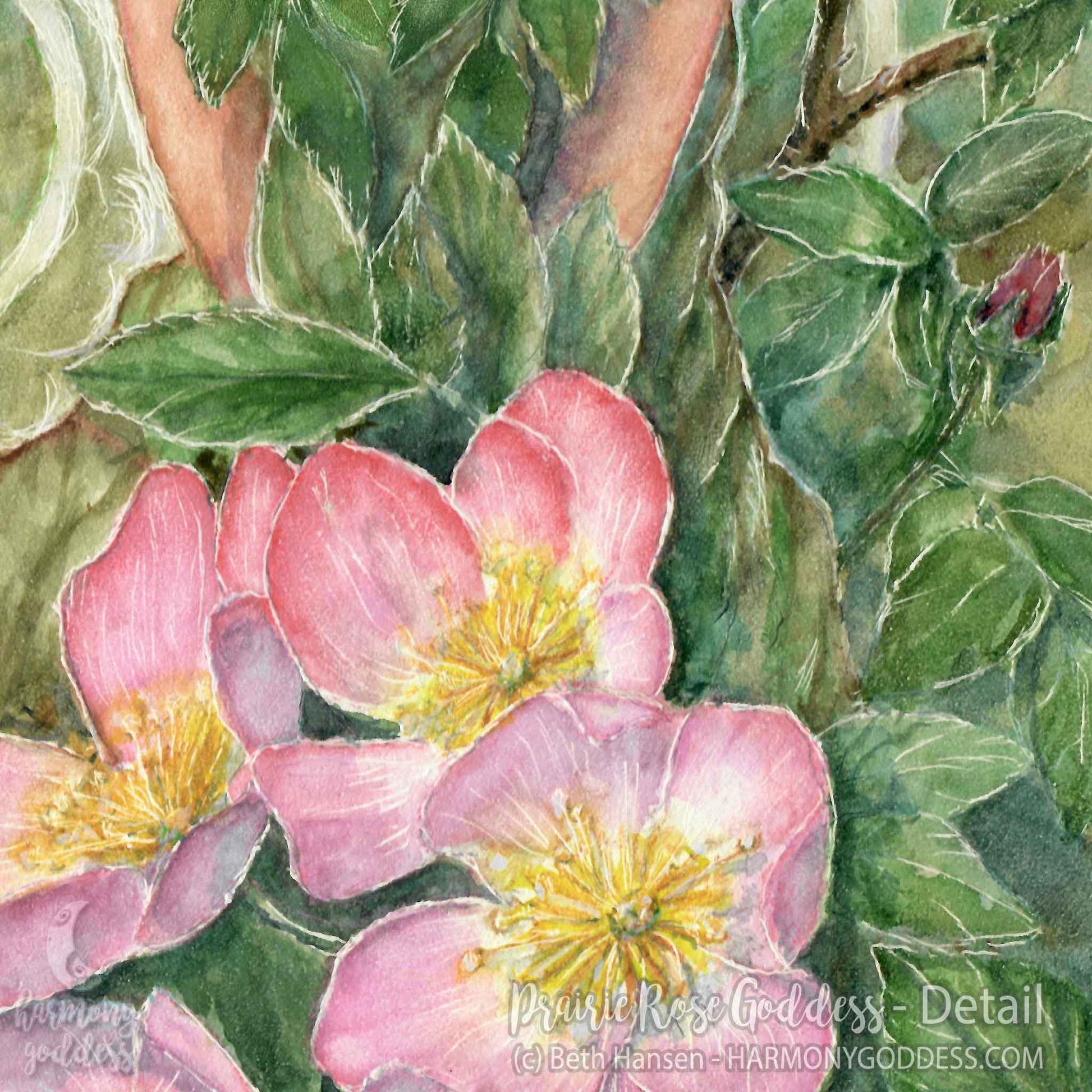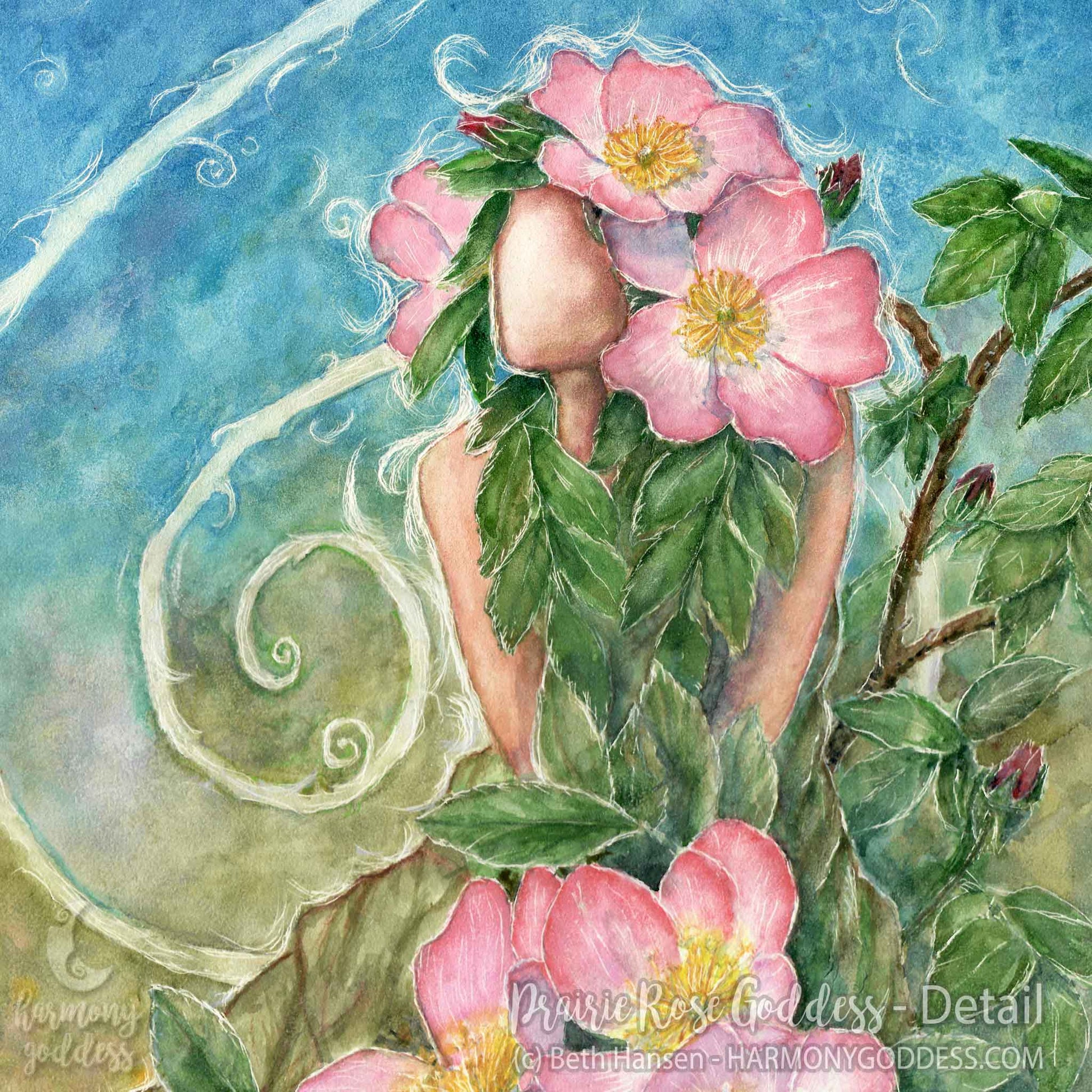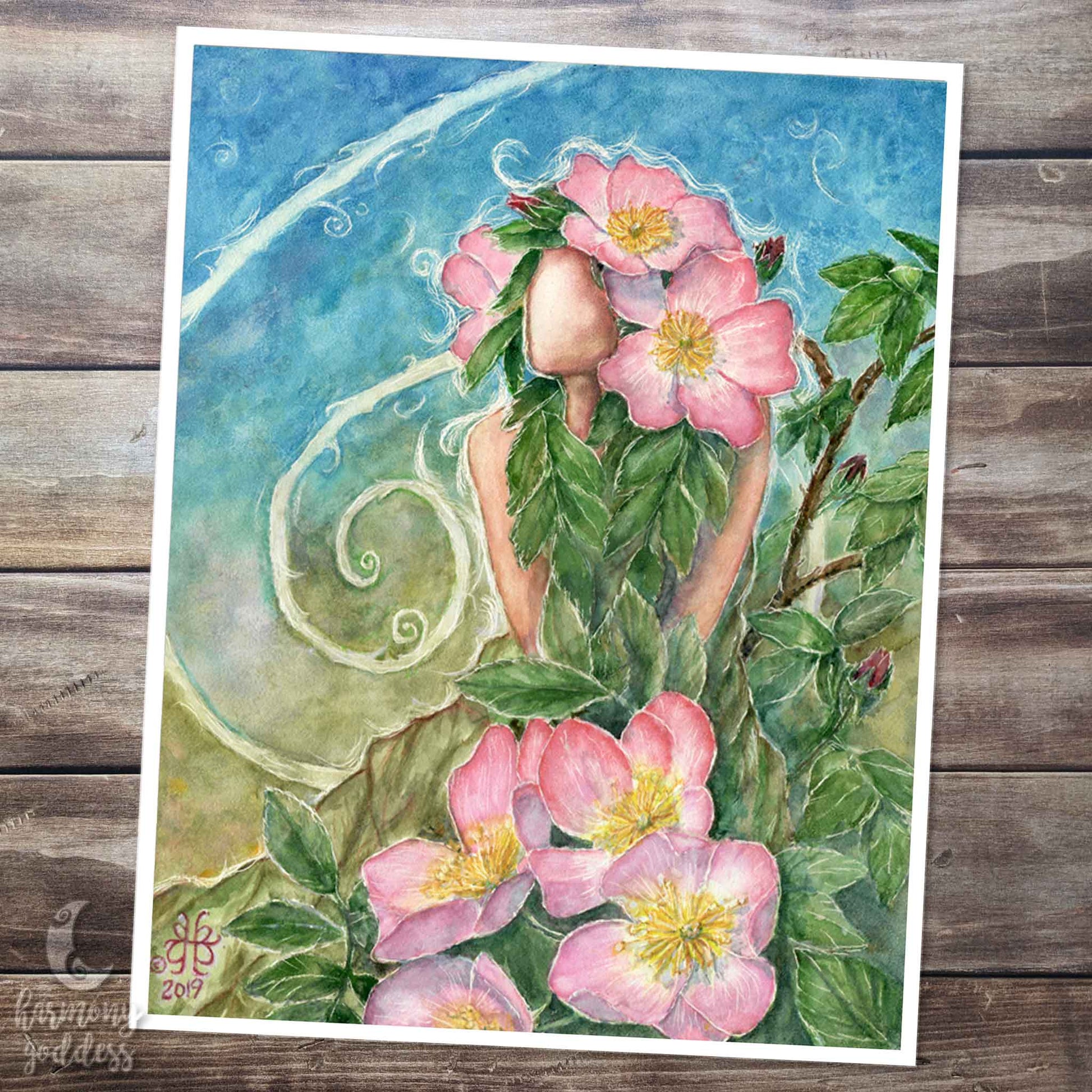 🌸 The Prairie Rose Goddess sits under a blue sky in enchanting beauty. Her magic lies in the swirl of growing vines, including the thorns of protection, with flowers as her crown and leaves as her hair. This shining nature goddess art print brings the wide open prairie indoors. Crafted from an original watercolor painting, this expressive fine art piece is made with the intention of celebrating the power of the sacred feminine with the awe of the expanse of the prairie. The Prairie Rose Wildflower Goddess Print makes every space she is in an expression of your own wild divine nature.
