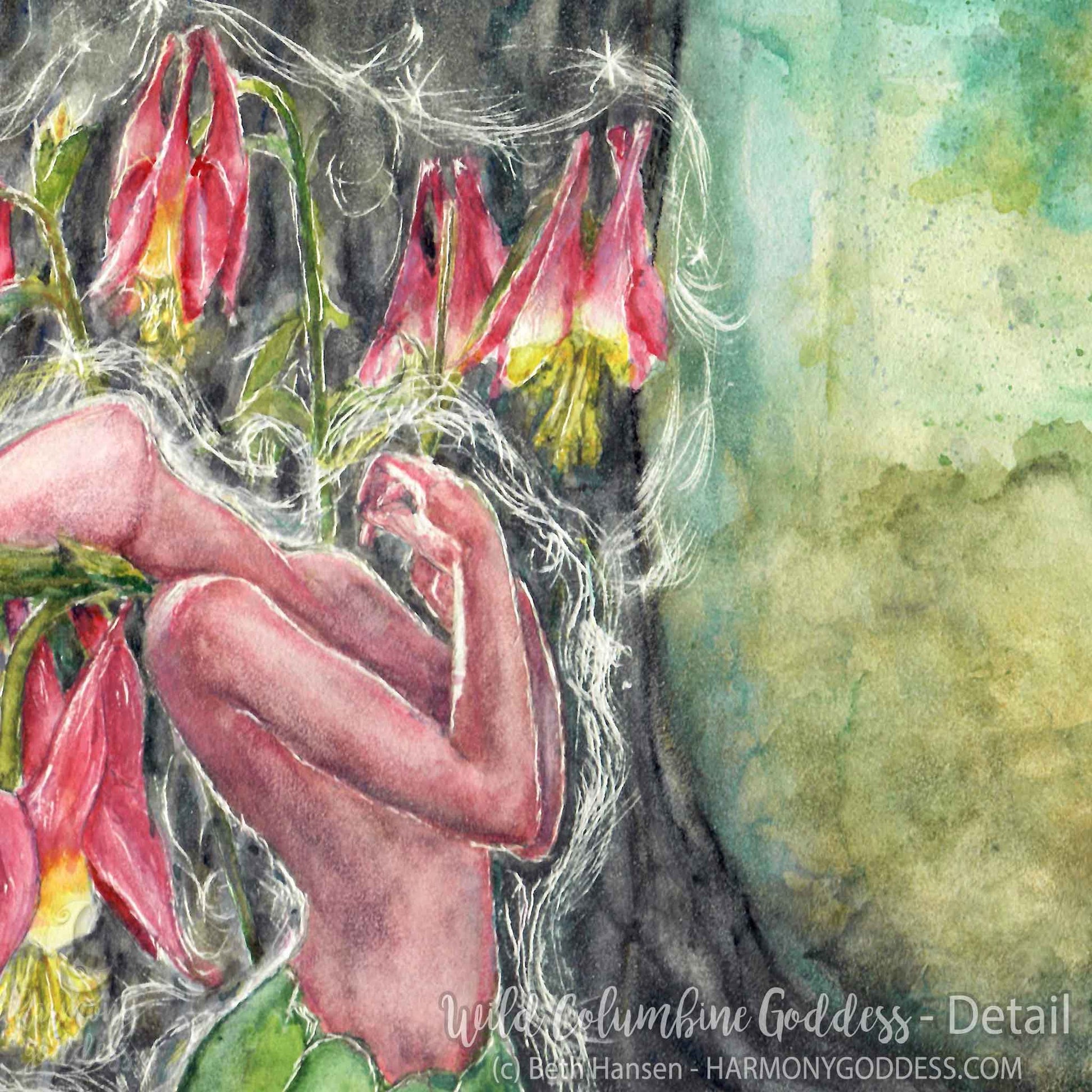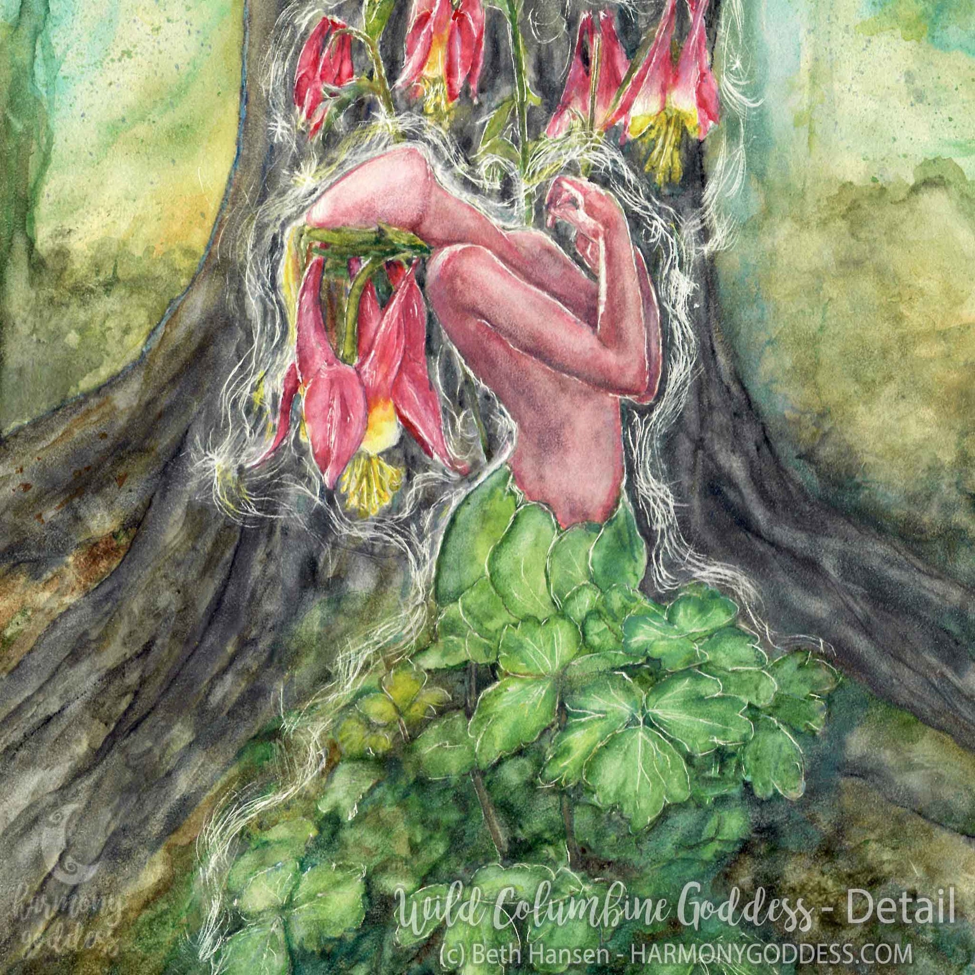 ☘️ Among the roots of a silver maple tree, the Wild Columbine Goddess weaves a sparkling spell. Her magic twinkles among the flowers, while the leaves of the columbine make a swirling skirt of enchantment suitable for any fairy tale ball. This shining nature goddess art print brings the energy of light into any room of your home, honoring the power of the sacred feminine. Crafted from an original watercolor flower painting, this finely detailed art piece is made with the intention of celebrating the divine feminine with the power of rapid growth that is blessed by the deeply rooted tree. The Wild Columbine Wildflower Goddess Print makes a magical addition to your sacred space, and is an expression of your own wild divine nature.